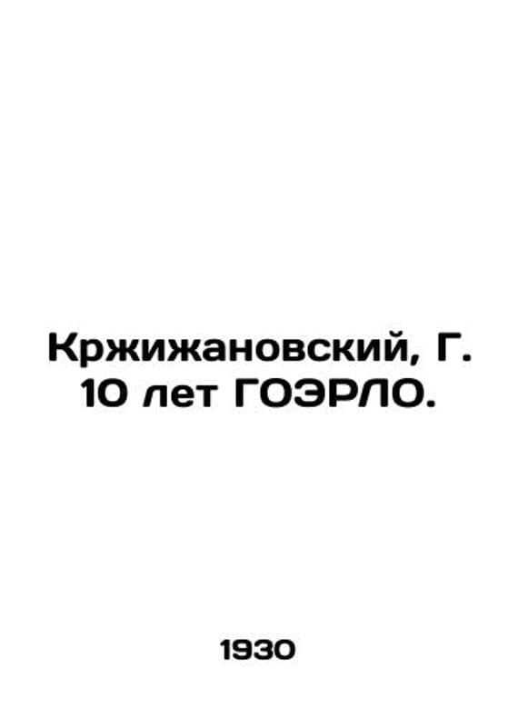 Krzyzanowski G. 10 years old GOERLO. In Russian (ask us if in doubt)/Krzhizhanovskiy G. 10 let GOERLO. Speech at the solemn Plenum of the Moscow Executive Committee and the Moscow Council on December 25 1930. M. L. OGIZ Moscow Worker. 1931. 29 3 p. SKUalb5ab662bf311765fa.