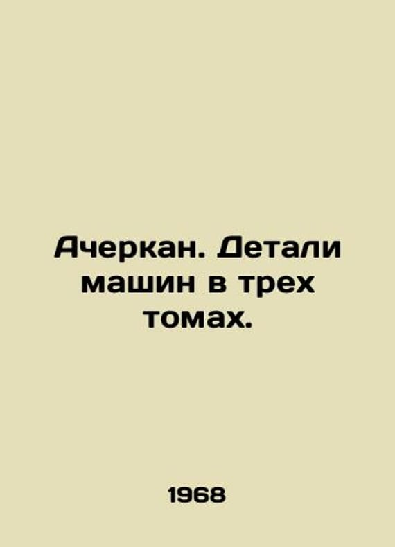 Acherkan. Machine parts in three volumes. In Russian /Acherkan. Detali mashin v trekh tomakh. Calculation and Design. Reference book M. Machinebuilding, 1968. We have thousands of titles and often several copies of each title may be available. Please feel free to contact us for a detailed description of the copies available. SKUalb5ac10b07ae5f0b13.