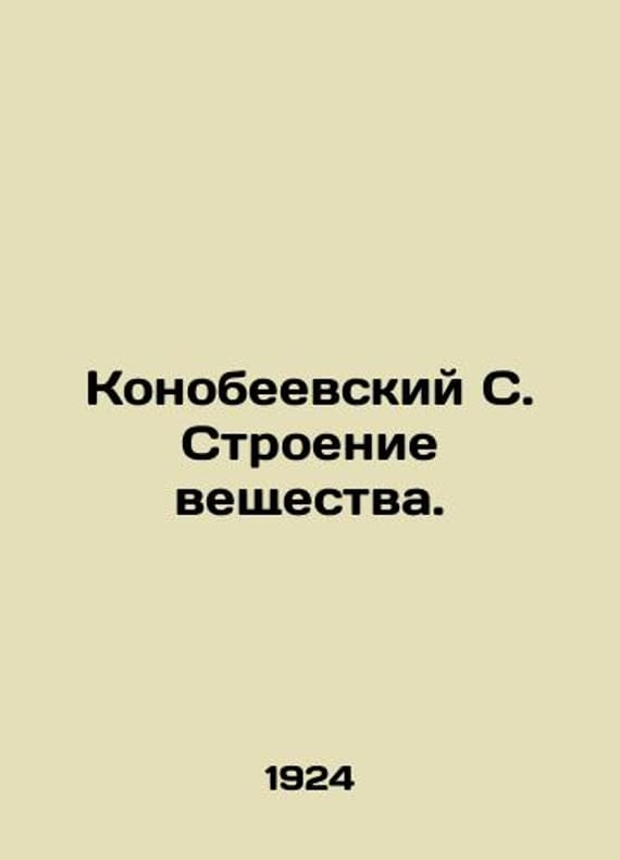 Konobeevsky S. Structure of matter. In Russian /Konobeevskiy S. Stroenie veshchestva. M.L. Gosizdat. 1924. 220 p. We have thousands of titles and often several copies of each title may be available. Please feel free to contact us for a detailed description of the copies available. SKUalb5b2843aef5c40f10.