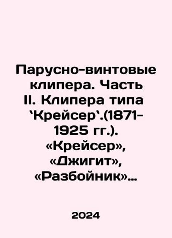 Sail-propeller clippers. Part II. Cruiser-type clippers (1871-1925). Cruiser, Jigit, Robber, and Shooter. In Russian /Parusno-vintovye klipera. Chast II. Klipera tipa Kreyser.(1871-1925 gg.). «Kreyser», «Dzhigit», «Razboynik» i «Strelok». Sbornik statey i dokumentov. Series: Russian Imperial Fleet. Moscow 2024, 76 p. We have thousands of titles and often several copies of each title may be available. Please feel free to contact us for a detailed description of the copies available. SKUalb5b403fa2d7c58d30.