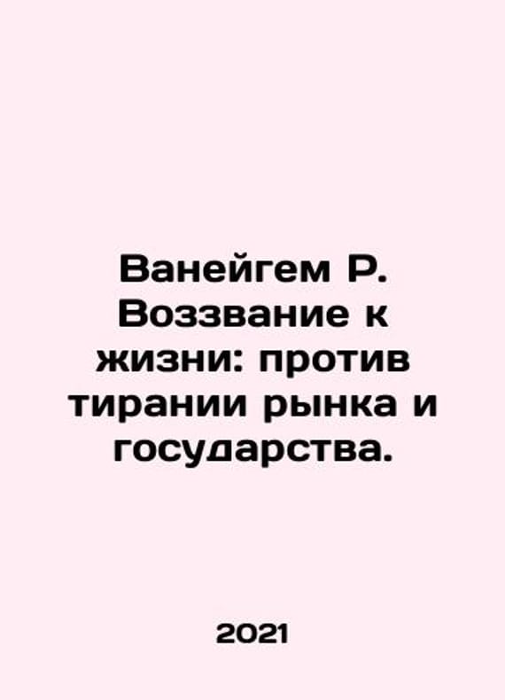 Vanaigem R. A Call to Life: Against the Tyranny of the Market and the State. In Russian /Vaneygem R. Vozzvanie k zhizni: protiv tiranii rynka i gosudarstva. M. Gilea 2021. 160 p. We have thousands of titles and often several copies of each title may be available. Please feel free to contact us for a detailed description of the copies available. SKUalb5ba1810822c73230.