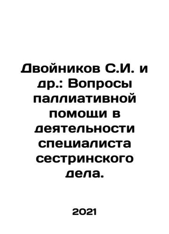 Tbilinikov S.I. et al.: Issues of palliative care in the activities of a nursing specialist. In Russian /Dvoynikov S.I. i dr.: Voprosy palliativnoy pomoshchi v deyatelnosti spetsialista sestrinskogo dela. Textbook M Gaotar Media 2021 336 pp. We have thousands of titles and often several copies of each title may be available. Please feel free to contact us for a detailed description of the copies available. SKUalb5bb08433a419d48e.