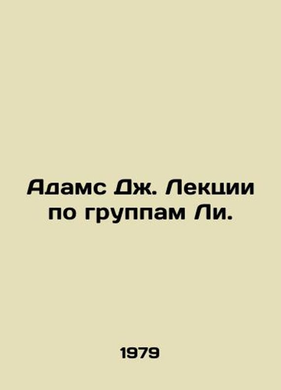 J. Adams Lectures on Lee Groups. In Russian /Dzh. Adams Lektsii po gruppam Li. Translation from English. M. Science 1979.Contact us for details or to request photos of available books. Delivery of this book could take longer than normal due to additional handling time before shipping, and no rush delivery options are available. Please let us know if you have a specific date by which you need to receive your order.SKUalbaa6fbb88e3f9d994