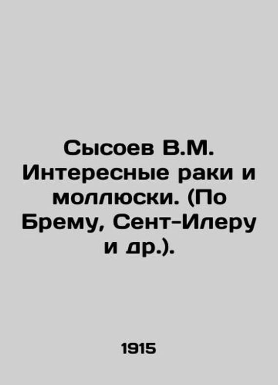 Sysoev V.M. Interesting crayfish and shellfish. (Po Brem, Saint-Hilaire et al.). In Russian /Sysoev V.M. Interesnye raki i mollyuski. (Po Bremu, Sent-Ileru i dr.). For family, school and self-education. Moscow, D.P. Efimov Publishing House, 1915, 64 p., 22.1x15 sm. We have thousands of titles and often several copies of each title may be available. Please feel free to contact us for a detailed description of the copies available. SKUalb5c0949f029789ee9.