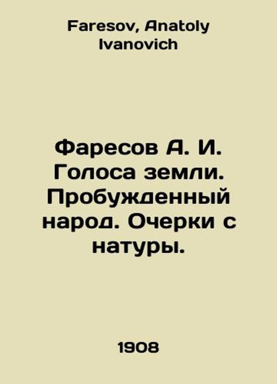 Faresov A.I. Voices of the earth. Awakened people. Essays from nature. In Russian /Faresov A. I. Golosa zemli. Probuzhdennyy narod. Ocherki s natury. St. Petersburg, 1909, 1908. 238, 228 p. We have thousands of titles and often several copies of each title may be available. Please feel free to contact us for a detailed description of the copies available. SKUalb5c2039f49001618a.