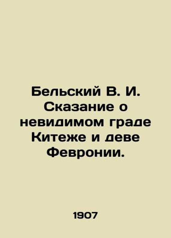 Belsky V. I. The tale of the invisible city of Kitezh and the virgin of Fevronia. In Russian /Belskiy V. I. Skazanie o nevidimom grade Kitezhe i deve Fevronii. Libretto. Music by N. Rimsky-Korsakov. St. Petersburg 1907. We have thousands of titles and often several copies of each title may be available. Please feel free to contact us for a detailed description of the copies available. The delivery of this book might be delayed beyond the usual timeframe due to extended processing and preparation before shipment, and faster shipping opSKUalb5c3e1e44425df99a