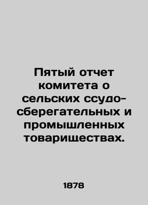 Fifth Report of the Committee on Rural Savings and Lending and Industrial Associations. In Russian (ask us if in doubt)/Pyatyy otchet komiteta o selskikh ssudo-sberegatelnykh i promyshlennykh tovarishchestvakh.. Short description: In Russian (ask us if in doubt).S. Petersburg Kirschbaum 1878 XC 148 p. We have thousands of titles and often several copies of each title may be available. Please feel free to contact us for a detailed description of the copies available. SKUalb5c81e717c143f7c0