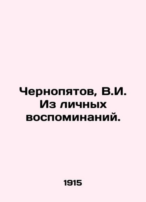 Chernopyatov, V.I. From personal memories. In Russian /Chernopyatov, V.I. Iz lichnykh vospominaniy. Moscow Historical and Pedigree History in Moscow 1915. We have thousands of titles and often several copies of each title may be available. Please feel free to contact us for a detailed description of the copies available. SKUalb5ca001f18abafb26.
