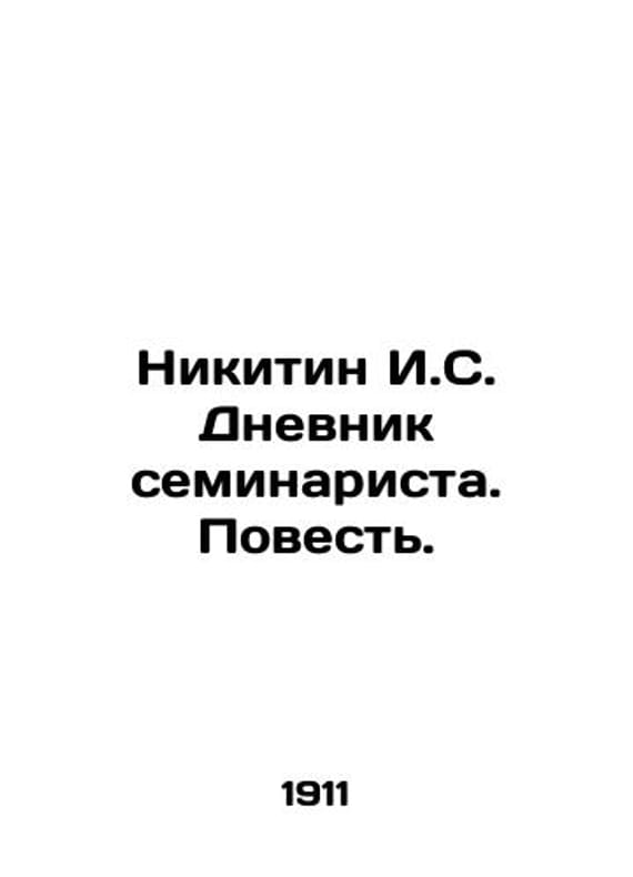 Nikitin I.S. The Diary of a Seminary Man. Tale. In Russian /Nikitin I.S. Dnevnik seminarista. Povest. Series: Universal Library. # 551. M. Publishing House, 1911. We have thousands of titles and often several copies of each title may be available. Please feel free to contact us for a detailed description of the copies available. SKUalb5cc095e6d73f66ff.