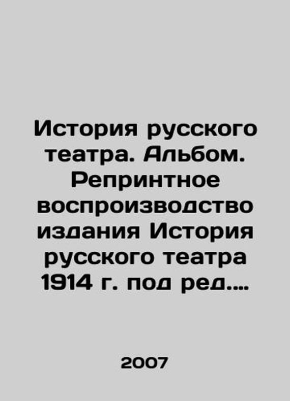 History of Russian Theatre. Album. Reprinting of the History of Russian Theatre 1914, edited by V.V.Kalash and N.E. Efros In Russian /Istoriya russkogo teatra. Albom. Reprintnoe vosproizvodstvo izdaniya Istoriya russkogo teatra 1914 g. pod red. V.V.Kalasha i N.E. Efrosa Under the editorship of V.V.Kalash and N.E. Efros S.Pb.Without edition 2007, 450 p. We have thousands of titles and often several copies of each title may be available. Please feel free to contact us for a detailed description of the copies available. SKUalb5ccbe04cccb110fa.