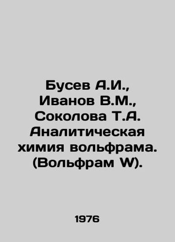 Busev A.I., Ivanov V.M., Sokolova T.A. Tungsten Analytical Chemistry (Tungsten W). In Russian /Busev A.I., Ivanov V.M., Sokolova T.A. Analiticheskaya khimiya volframa. (Volfram W). Series: Analytical Chemistry of Elements. Editor-in-Chief, Academician A.P. Vinogradov. Volume Editor, B.I. Kaplan. Order of Lenin Institute of Geochemistry and Analytical Chemistry, Vernadsky Academy of Sciences of the USSR. Moscow Science 1976. A monograph on analytical chemistry of tungsten is published for the first time. It contains the physical-chemical and chemical-analytical characteristics of tungsten, its simple and complex compounds. We have thousands of titles and often several copies of each title may be available. Please feel free to contact us for a detailed description of the copies available. SKUalb5cf4d526edfa91f5.
