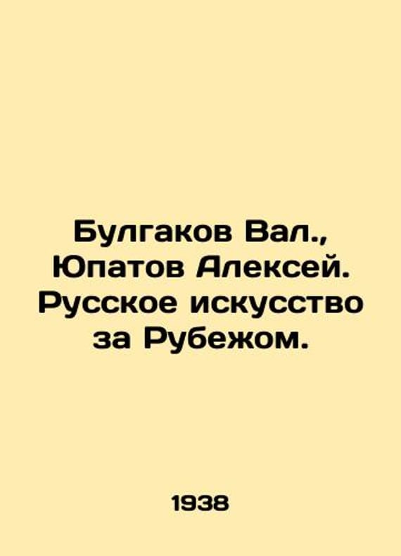 Bulgakov Val. Yupatov Alexey. Russian Art Behind the Rubezh. In Russian (ask us if in doubt)/Bulgakov Val. Yupatov Aleksey. Russkoe iskusstvo za Rubezhom. Short description: In Russian (ask us if in doubt).Preface by N. Roerich. Prague-Riga. 1938-1939. 63s. We have thousands of titles and often several copies of each title may be available. Please feel free to contact us for a detailed description of the copies available. SKUalb5d0a07391cf30747