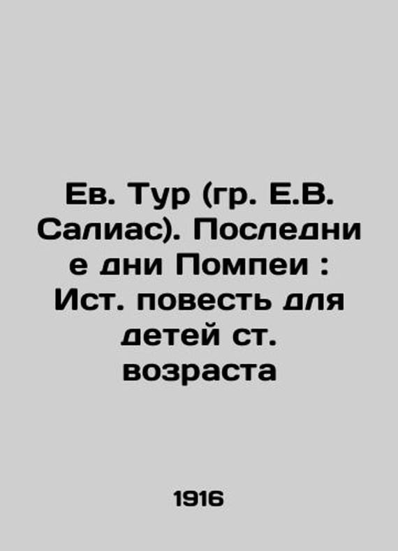 The Last Days of Pompeii: An Eastern Tale for Old-Age Children. In Russian /Ev.Tur(gr. E.V. Salias). PosledniedniPompei: Ist. povest dlya detey st. vozrasta A collection of essays for children and young people by Yevgeny Tour by E.V. Salias). 8th edition Petrograd: type. M. Stasyulevich, 1916. We have thousands of titles and often several copies of each title may be available. Please feel free to contact us for a detailed description of the copies available. SKUalb5d1526e2452498f2.