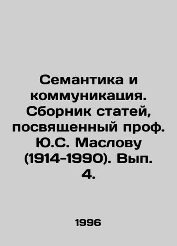 Semantics and Communication. A collection of articles dedicated to Prof. Y.S. Maslov (1914-1990). Volume 4. In Russian /Semantika i kommunikatsiya. Sbornik statey, posvyashchennyy prof. Yu.S. Maslovu (1914-1990). Vyp. 4. Under the editorship of L.V. Sakharnoy S.Pb.Publishing House of St. Petersburg State University 1996. We have thousands of titles and often several copies of each title may be available. Please feel free to contact us for a detailed description of the copies available. SKUalb5d4bf12be6837106.