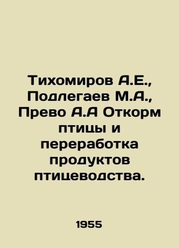 Tikhomirov A.E., Podlegaev M.A., Prevo A.A. Feeding poultry and processing poultry products. In Russian /Tikhomirov A.E., Podlegaev M.A., Prevo A.A Otkorm ptitsy i pererabotka produktov ptitsevodstva. Moscow Pishchepromyzdat. 1955. We have thousands of titles and often several copies of each title may be available. Please feel free to contact us for a detailed description of the copies available. SKUalb5d5099aef4c7268d.