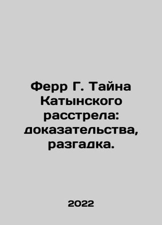 Ferr G. The Mystery of the Katyn Shooting: Evidence, Solution. In Russian /Ferr G. Tayna Katynskogo rasstrela: dokazatelstva, razgadka. Ser. Soviet Century) M. Rodina 2022. 304 p. We have thousands of titles and often several copies of each title may be available. Please feel free to contact us for a detailed description of the copies available. SKUalb5d64bd46ee3198fc.