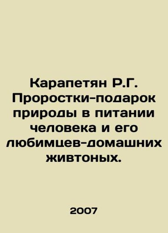 R.G. Karapetyan Prophets - a gift of nature in the nutrition of man and his pets. In Russian /Karapetyan R.G. Prorostki-podarok prirody v pitanii cheloveka i ego lyubimtsev-domashnikh zhivtonykh. M. 2007.We have thousands of titles and often several copies of each title may be available. Please feel free to contact us for a detailed description of the copies available. SKUalb5e2da27d8c199062.