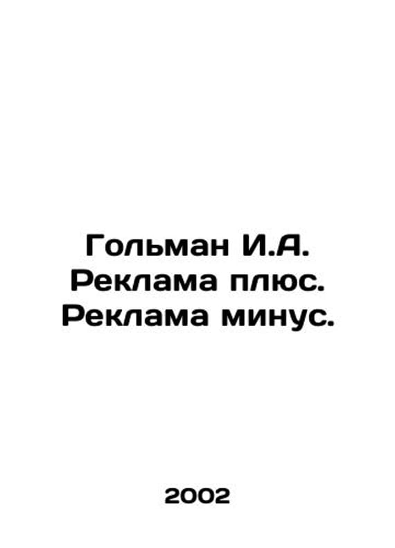 Golman I.A. Advertising plus. Advertising minus. In Russian /Golman I.A. Reklama plyus. Reklama minus. Series: Advertising Technologies. Moscow: Gella-Print. 2002 year.We have thousands of titles and often several copies of each title may be available. Please feel free to contact us for a detailed description of the copies available. SKUalb5e37d3d5b1324f96.