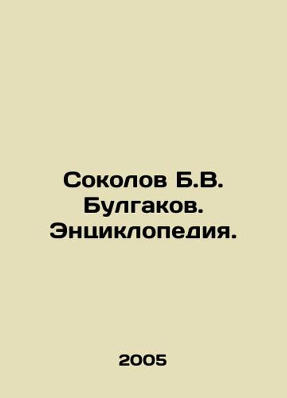 Sokolov B.V. Bulgakov. Encyclopedia. In Russian /Sokolov B.V. Bulgakov. Entsiklopediya. M. 2005. 831 p. We have thousands of titles and often several copies of each title may be available. Please feel free to contact us for a detailed description of the copies available. SKUalb5e403896d52c01b0.
