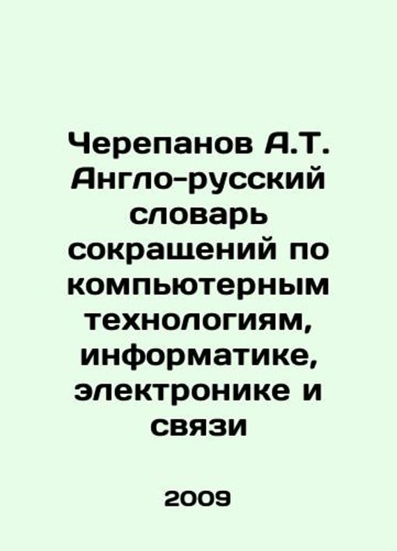 A.T. Cherepanov English-Russian Dictionary of Abbreviations for Computer Technology, Informatics, Electronics and Communications In Russian /Cherepanov A.T. Anglo-russkiy slovar sokrashcheniy po kompyuternym tekhnologiyam, informatike, elektronike i svyazi SPb BHV-Petersburg 2009. We have thousands of titles and often several copies of each title may be available. Please feel free to contact us for a detailed description of the copies available. SKUalb5e878a29a016f346.
