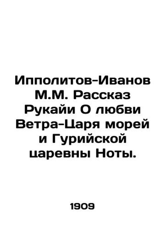 Hippolitov-Ivanov M.M. The Story of Rukaya On the Love of the Wind-King of the Seas and the Gurian Queen of Notas. In Russian /Ippolitov-Ivanov M.M. Rasskaz Rukayi O lyubvi Vetra-Tsarya morey i Guriyskoy tsarevny Noty. From the drama opera Treason. Moscow-Leipzig, 1909. We have thousands of titles and often several copies of each title may be available. Please feel free to contact us for a detailed description of the copies available. SKUalb5ecde4cc8978dd2f.
