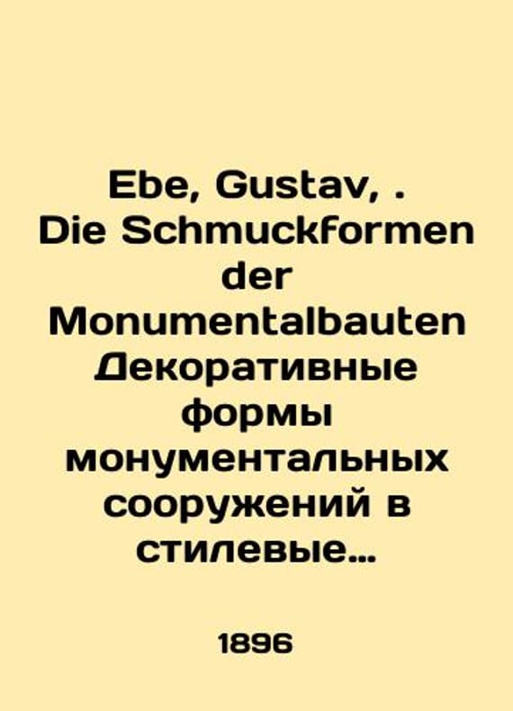 Ebe, Gustav,. Die Schmuckformen der Monumentalbauten Decorative forms of monumental structures in style periods. Part V. Early and High Renaissance In Russian /Ebe,Gustav,. Die Schmuckformen der Monumentalbauten Dekorativnye formy monumentalnykh sooruzheniy v stilevye periody. Chast V. Rannee i Vysokoe Vozrozhdenie In den Stilepochen. V. Theil. Fruh- und Hochrenaissance Leipzig Baumgartner s 1896 144c. We have thousands of titles and often several copies of each title may be available. Please feel free to contact us for a detailed description of the copies available. SKUalb5f0cdf999f1a22d0.