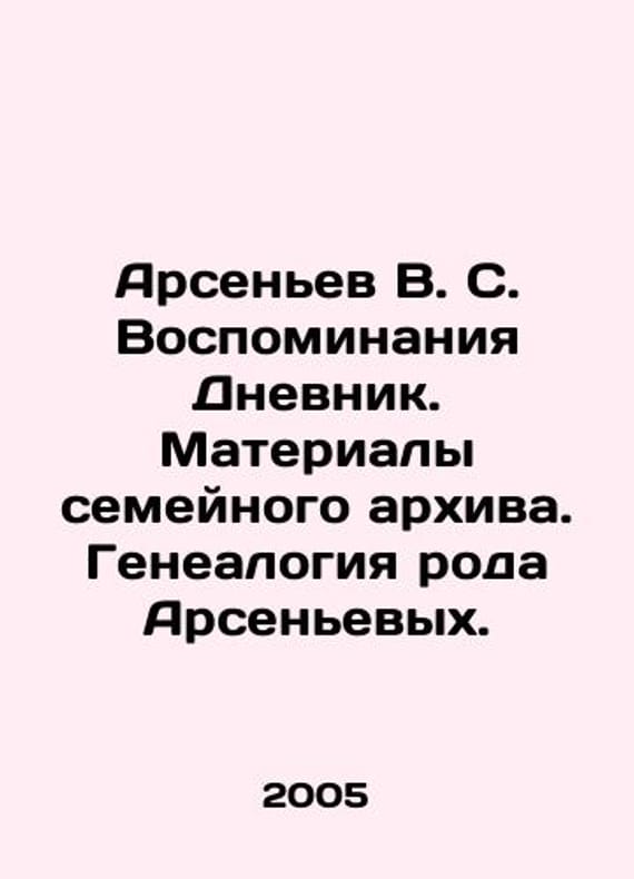 Arsenyev V. S. Memories Diary. Materials from the family archive. Genealogy of the Arsenyevs family. In Russian /Arsenev V. S. Vospominaniya Dnevnik. Materialy semeynogo arkhiva. Genealogiya roda Arsenevykh.Compilation, preparation of text and comments by A. I. Serkov, M. V. Reizin. Series: Russian Freemasonry. Materials and Research 6. St. Petersburg Novikov Publishing House 2005.We have thousands of titles and often several copies of each title may be available. Please feel free to contact us for a detailed description of the copies available. SKUalb5f16a2eabd295eb7.