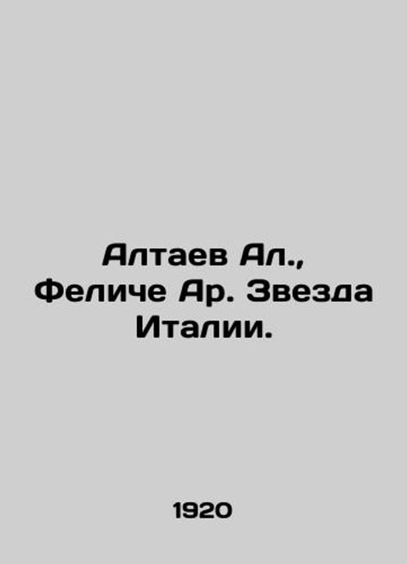 Altaev Al., Felice Ar. Star of Italy. In Russian /Altaev Al., Feliche Ar. Zvezda Italii. St. Petersburg Gosizdat 1920. We have thousands of titles and often several copies of each title may be available. Please feel free to contact us for a detailed description of the copies available. SKUalb5f1dcac6e15129ac.
