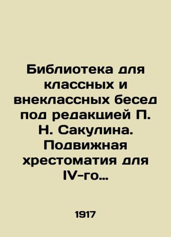 Library for classroom and extra-curricular conversations, edited by P. N. Sakulin. A mobile textbook for the fourth grade, compiled by V. E. Frydenberg and I. N. Rozanov. In Russian /Biblioteka dlya klassnykh i vneklassnykh besed pod redaktsiey P. N. Sakulina. Podvizhnaya khrestomatiya dlya IV-go klassa, sostavlennaya V. E. Fridenbergom i I. N. Rozanovym. Illustrations by A. N. and V. I. Komarov. Moscow: ed. T-va Sytin, 1917. XII, 691.1 c.il. We have thousands of titles and often several copies of each title may be available. Please feel free to contact us for a detailed description of the copies available. SKUalb1bc1dd769d410795.