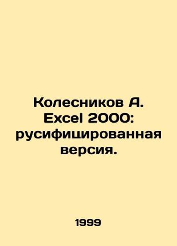 A. Kolesnikov Excel 2000: Russian version. In Russian /Kolesnikov A. Excel 2000: rusifitsirovannaya versiya. For user Irina Kyiv, BHV 1999. We have thousands of titles and often several copies of each title may be available. Please feel free to contact us for a detailed description of the copies available. SKUalb5f3298f35329a65f.