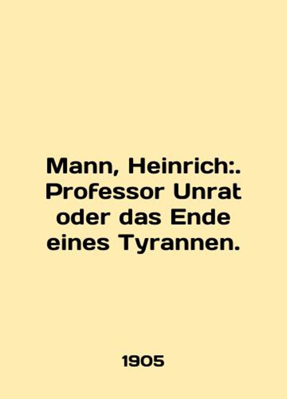 Mann, Heinrich:. Professor Unrat oder das Ende eines Tyrannen. In English /Mann, Heinrich:. Professor Unrat oder das Ende eines Tyrannen. The first edition of the Gothic German novel Munchen: Langen 1905. We have thousands of titles and often several copies of each title may be available. Please feel free to contact us for a detailed description of the copies available. SKUalb5f6b46760db5904e.