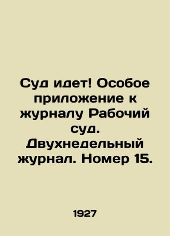 The trial is underway Special supplement to the journal Workers Court. A biweekly journal. Issue 15. In Russian /Sud idet Osoboe prilozhenie k zhurnalu Rabochiy sud. Dvukhnedelnyy zhurnal. Nomer 15. August L.: Workers Court. 1927. We have thousands of titles and often several copies of each title may be available. Please feel free to contact us for a detailed description of the copies available. SKUalb5fd2a39880e0ac59.