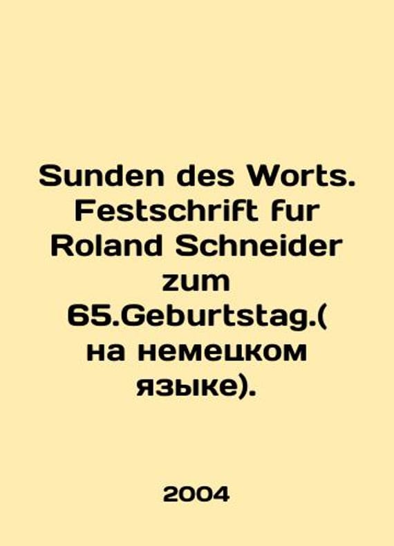 Sunden des Worts. Festschrift fur Roland Schneider zum 65.Geburtstag. (in German). In Russian /Sunden des Worts. Festschrift fur Roland Schneider zum 65.Geburtstag.( na nemetskom yazyke). Hamburg: 2004. We have thousands of titles and often several copies of each title may be available. Please feel free to contact us for a detailed description of the copies available. SKUalb5fd6c089cfe888d2.