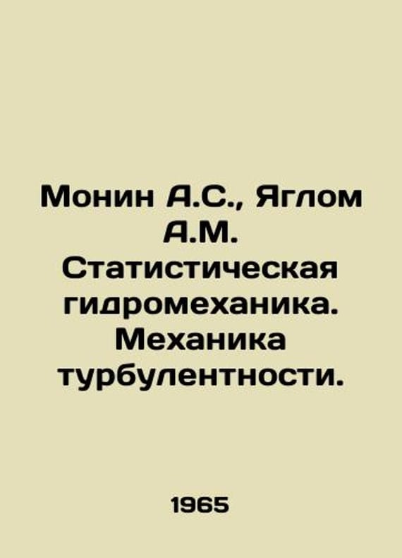 Monin A.S., Jaglom A.M. Statistical hydromechanics. The mechanics of turbulence. In Russian /Monin A.S., Yaglom A.M. Statisticheskaya gidromekhanika. Mekhanika turbulentnosti. In 2 Volumes. Volume 1 M. Science. 1965. We have thousands of titles and often several copies of each title may be available. Please feel free to contact us for a detailed description of the copies available. SKUalb60062c1f0ce6f66e.