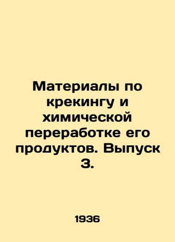 Materials for Cracking and Chemical Processing of Its Products. Issue 3. In Russian /Materialy po krekingu i khimicheskoy pererabotke ego produktov. Vypusk 3. Edited by V.V. Arsentyev, A.F. Dobryansky, M.B. Markovich, and V.V. Pigulevsky. Proceedings of the Experimental Research Plant Khimgaz. L. ONTI. Chemical Theoretical 1936. 494, 1 p. We have thousands of titles and often several copies of each title may be available. Please feel free to contact us for a detailed description of the copies available. SKUalb6015204e566db9d6.