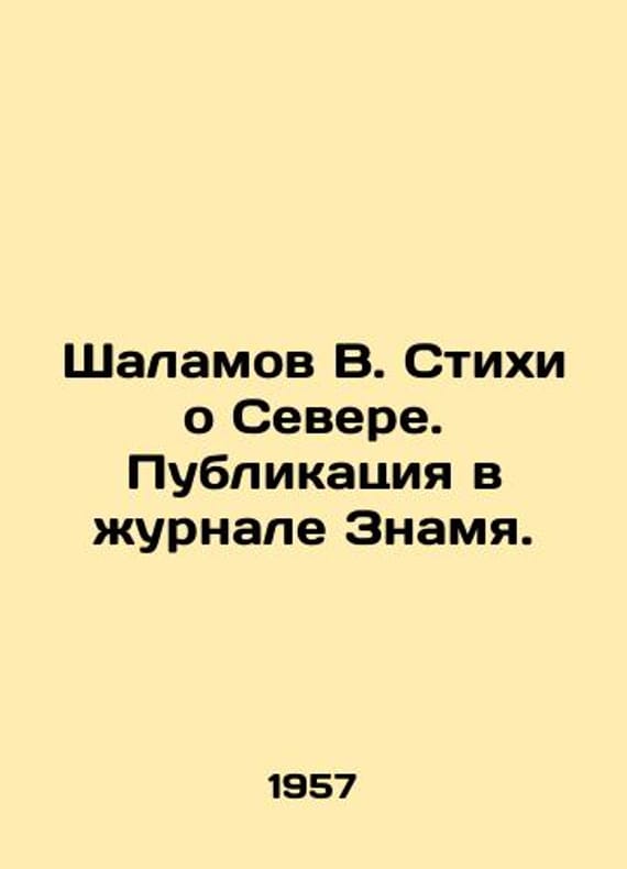 Shalamov V. Poems about the North. Publication in the Znamya magazine. In Russian /Shalamov V. Stikhi o Severe. Publikatsiya v zhurnale Znamya. Literary-art and socio-political monthly magazine. M. Pravda 1957. 224 p. We have thousands of titles and often several copies of each title may be available. Please feel free to contact us for a detailed description of the copies available. SKUalb603ee3c8217fc0de.