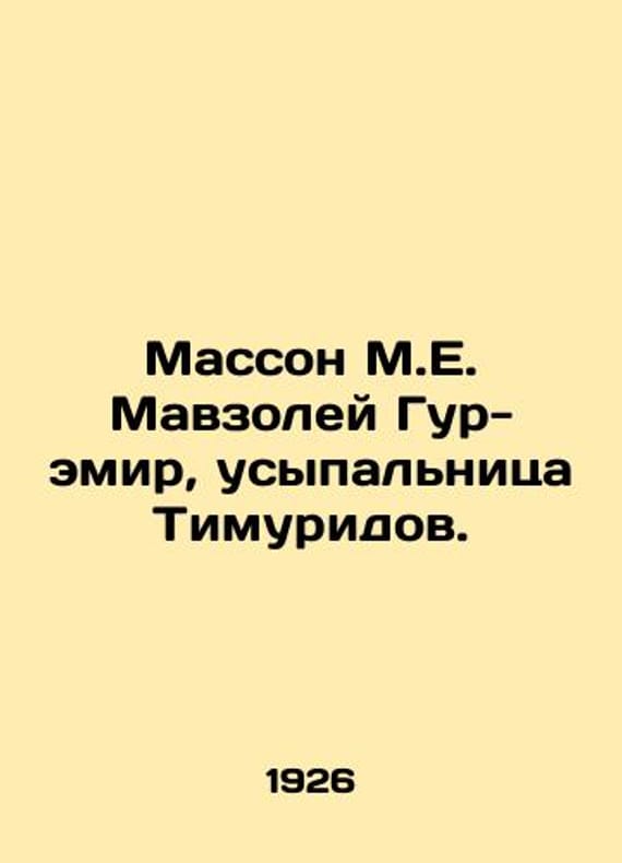 Masson M.E. Gur-Emir Mausoleum, Tomb of the Timurids. In Russian /Masson M.E. Mavzoley Gur-emir, usypalnitsa Timuridov. Cultural and Historical Tours of Samarkand. Issue 2. Tashkent. 1926. 31 p. We have thousands of titles and often several copies of each title may be available. Please feel free to contact us for a detailed description of the copies available. SKUalb603ee6a5d1920031.