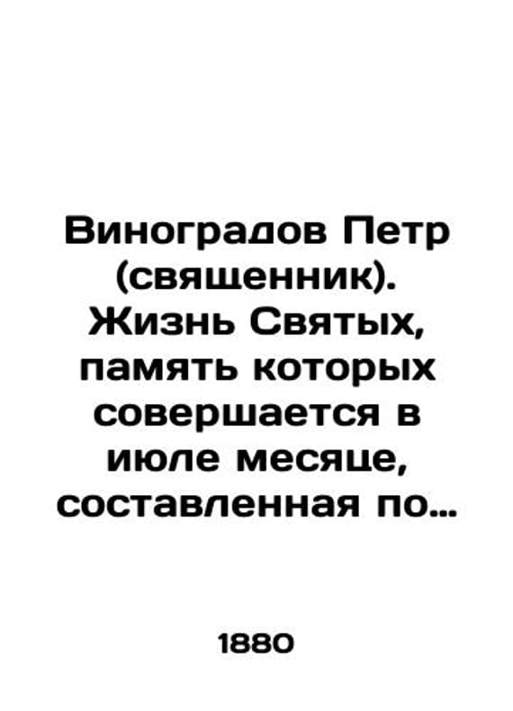 Vinogradov Peter (Priest). The life of the saints, whose memory is celebrated in July, is compiled according to the guide: The Mineas, the Patristices, the Russian Saints, the Divine Liturgical Days of the Orthodox Church and other books, with a description of the holidays. In Russian /Vinogradov Petr (svyashchennik). Zhizn Svyatykh, pamyat kotorykh sovershaetsya v iyule mesyatse, sostavlennaya po rukovodstvu: Chet-Minei, Patristiki, Russkikh Svyatykh, Bogosluzhebnykh dney Pravoslavnoy Tserkvi i drugikh knig, s opisaniem prazdnikov. Third Edition. M. Typography of S. Orlov. 1880. 135s. We have thousands of titles and often several copies of each title may be available. Please feel free to contact us for a detailed description of the copies available. SKUalb6072b1122b2f6731.