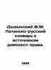 Dydynsky F.M. Latin-Russian Dictionary to Sources of Roman Law. In Russian /Dydynskiy F.M. Latinsko-russkiy slovar k istochnikam rimskogo prava. According to 1896 edition Spark 1998. We have thousands of titles and often several copies of each title may be available. Please feel free to contact us for a detailed description of the copies available. SKUalb60800739185cab50.