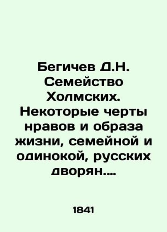 Begichev D.N. The Kholmsky family. Some features of mores and ways of life family and lonely Russian nobles. In six parts in three bindings In Russian (ask us if in doubt)/Begichev D.N. Semeystvo Kholmskikh. Nekotorye cherty nravov i obraza zhizni semeynoy i odinokoy russkikh dvoryan. V shesti chastyakh v trekh perepletakh Short description: In Russian (ask us if in doubt).Edition 3 reviewed and corrected with additional information in the biography of Timofey Ignatyevich Sundukov and other details We have thousands of titles and often several copies of each title may be available. Please feel free to contact us for a detailed description of the copies available. SKUalb60812d2e1503dff1