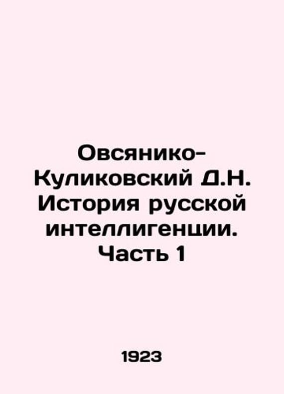 Ovsyaniko-Kulikovsky D.N. History of Russian Intellectuals. Part 1 In Russian /Ovsyaniko-Kulikovskiy D.N. Istoriya russkoy intelligentsii. Chast 1-ya In Russian. Series: Collection of Works. Volume VII of St. Petersburg. Edition by I.L. Ovsyaniko-Kulikovskaya 1914. 320s. We have thousands of titles and often several copies of each title may be available. Please feel free to contact us for a detailed description of the copies available. SKUalb883d9220c965ae9c