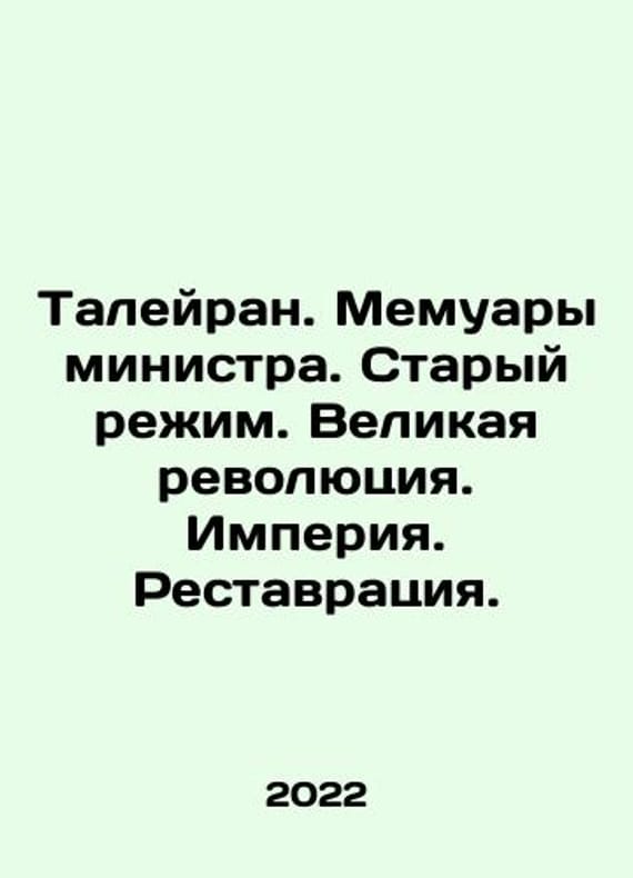 Talleyrand. Ministers Memoirs. Old Regime. Great Revolution. Empire. Restoration. In Russian /Taleyran. Memuary ministra. Staryy rezhim. Velikaya revolyutsiya. Imperiya. Restavratsiya. Model 30, Moscow Publishing House, V. Sekachev 2022, 468s. We have thousands of titles and often several copies of each title may be available. Please feel free to contact us for a detailed description of the copies available. SKUalb60e142f35d1132a2.