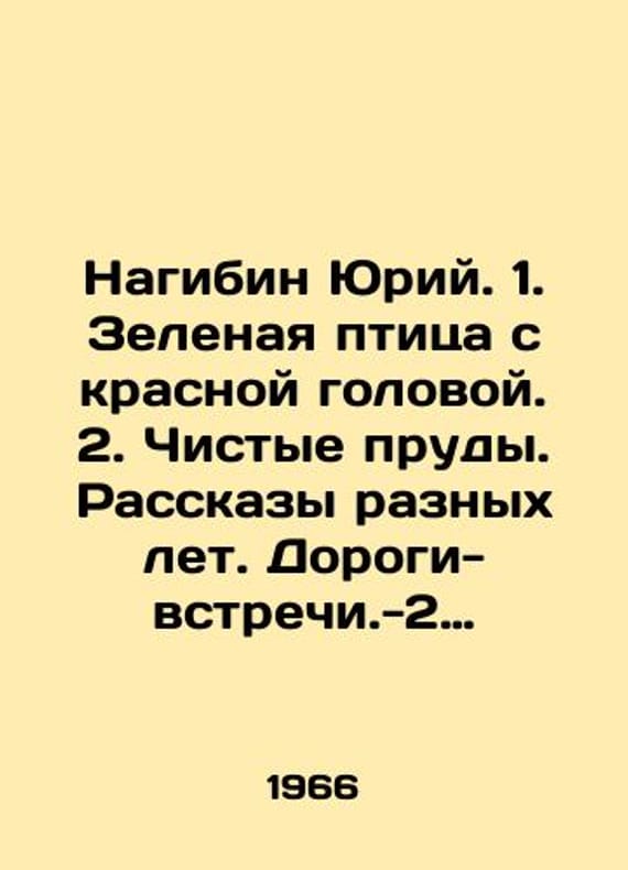 Nagibin Yuri. 1. Green bird with red head. 2. Clean ponds. Stories of different years In Russian /Nagibin Yuriy. 1. Zelenaya ptitsa s krasnoy golovoy. 2. Chistye prudy. Rasskazy raznykh let. Dorogi-vstrechi.-2 toma. M. Moscow Worker. 1966. 252 and 556p.. We have thousands of titles and often several copies of each title may be available. Please feel free to contact us for a detailed description of the copies available. SKUalb60f240294705da7a.