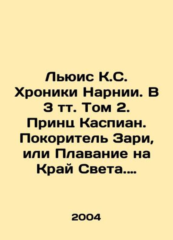 Lewis C. S. The Chronicles of Narnia. In Volume 3, Volume 2. Prince Caspian. Conquering Dawn, or Swimming to the Edge of Light. The Silver Chair. In Russian /Lyuis K.S. Khroniki Narnii. V 3 tt. Tom 2. Prints Kaspian. Pokoritel Zari, ili Plavanie na Kray Sveta. Serebryanoe Kreslo. Translated from English by N. Dobrokhotova-Maikova, N. M. Trauberg House of Hope. 2004. We have thousands of titles and often several copies of each title may be available. Please feel free to contact us for a detailed description of the copies available. SKUalb610ef9baa6dbaaab.