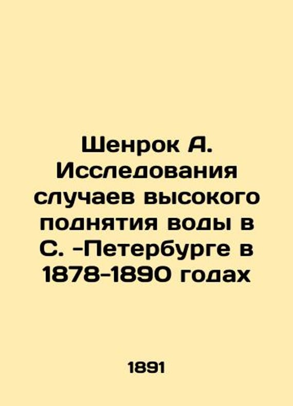 Shenrock A. Studies of cases of high water rise in St. Petersburg in 1878-1890 In Russian (ask us if in doubt)/Shenrok A. Issledovaniya sluchaev vysokogo podnyatiya vody v S. -Peterburge v 1878-1890 godakhSt. Petersburg type. Imp. Academy of Sciences 1891. 52 pp. We have thousands of titles and often several copies of each title may be available. Please feel free to contact us for a detailed description of the copies available. SKUalb6143893e720f6bea