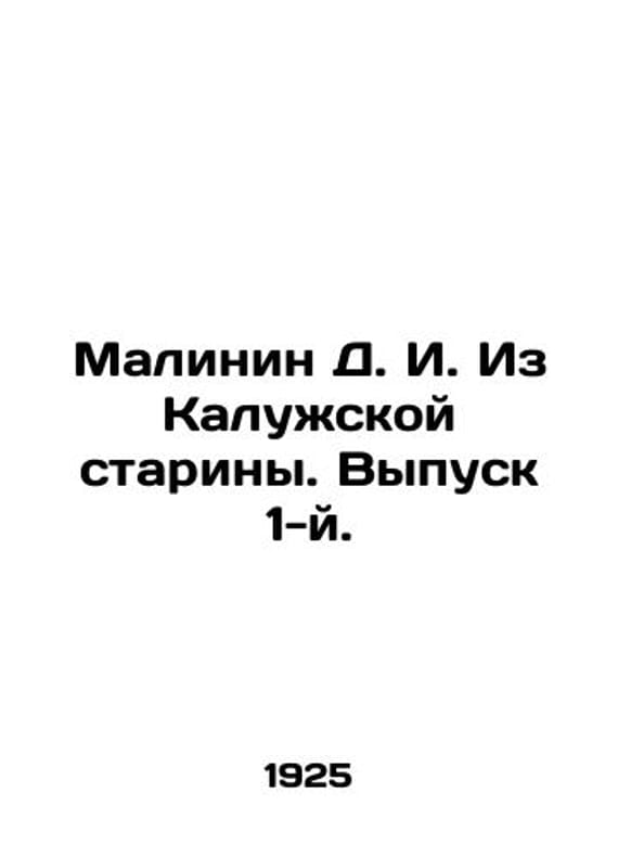 Malinin D. I. From Kaluga antiquity. Issue 1. In Russian (ask us if in doubt)/Ma. Kaluga. Kaluga Society of History and Antiquities. 1925. 34 p. SKUalb61ba2cf95b54b47a.