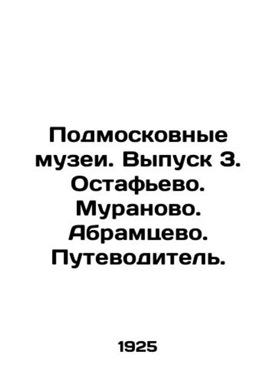 Moscow museums. Volume 3. Ostafyevo. Muranovo. Abramtsevo. Guide. In Russian /Podmoskovnye muzei. Vypusk 3. Ostafevo. Muranovo. Abramtsevo. Putevoditel. Edited by Yves Lazarevsky and V. Zgur. M.-L. Gosizdat. 1925. 93.3 p. We have thousands of titles and often several copies of each title may be available. Please feel free to contact us for a detailed description of the copies available. SKUalb62bd3c21ad9881f8.