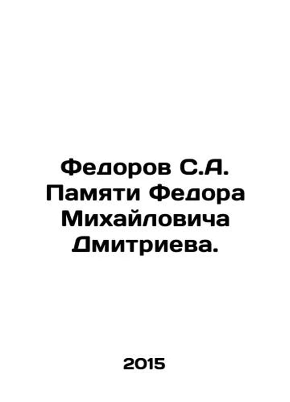 Fedorov S.A. In memory of Fyodor Mikhailovich Dmitriev. In Russian /Fedorov S.A. Pamyati Fedora Mikhaylovicha Dmitrieva.Moscow 2015.We have thousands of titles and often several copies of each title may be available. Please feel free to contact us for a detailed description of the copies available. SKUalb633b76e6ea8ab251.
