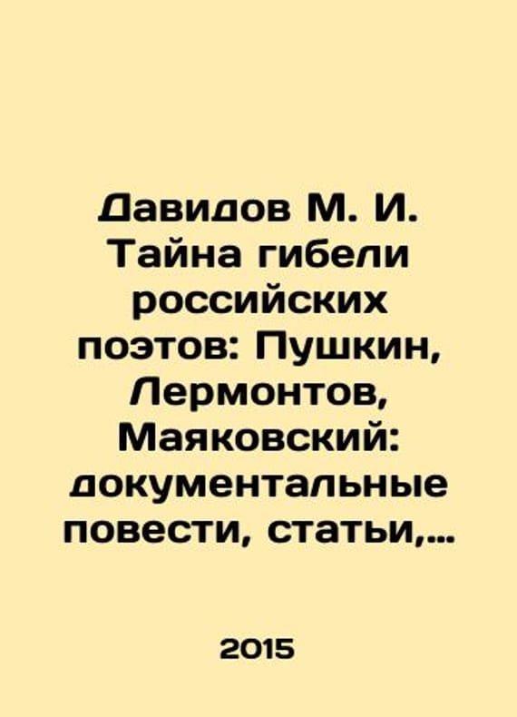 David M. I. The Mystery of the Death of Russian Poets: Pushkin, Lermontov, Mayakovsky: Documentary Novels, Articles, Research. In Russian /Davidov M. I. Tayna gibeli rossiyskikh poetov: Pushkin, Lermontov, Mayakovskiy: dokumentalnye povesti, stati, issledovaniya. Perm Perm writer, 2015. 216 p. We have thousands of titles and often several copies of each title may be available. Please feel free to contact us for a detailed description of the copies available. SKUalb634f7403eb264af6.