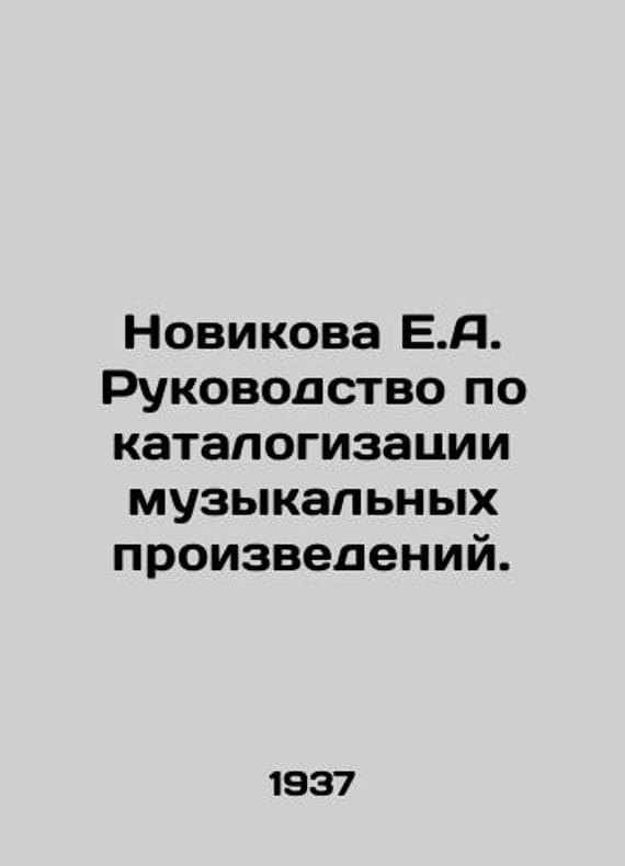 Novikova E.A. Guide to cataloguing musical works. In Russian /Novikova E.A. Rukovodstvo po katalogizatsii muzykalnykh proizvedeniy. Under the general editorship of A.S. Havenson. M. SOTSECGIZ. 1937. 92 s. We have thousands of titles and often several copies of each title may be available. Please feel free to contact us for a detailed description of the copies available. SKUalb6356fbc54aeb0842.